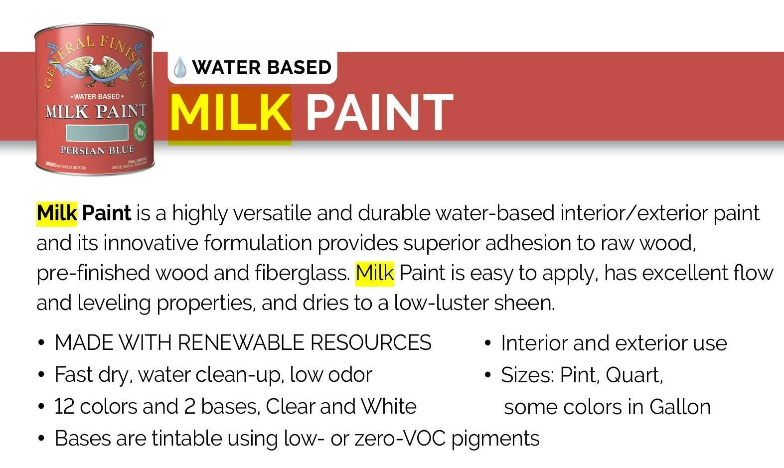 Paint Categories: All Collectibles Glaze Furniture Paint eBooks Jewelry Wood Stain High Performance Topcoat Extender and Primer Ready To Ship Available As-Is or Customized Available to Reserve Consultations Guides & E-Books All / Paint General Finishes Driftwood Milk Paint from $14.00 Sold Out Select Size Pint Quart Sold Out Added! General Finishes Alabaster White Milk Paint from $24.00 Sold Out Select Size Pint Gallon Quart Sold Out Added! General Finishes Millstone Milk Paint from $14.00 Sold Out Select Size Pint Quart Sold Out Added! General Finishes Queenstown Gray Milk Paint from $14.00 Sold Out Select Size Pint Quart Sold Out Added! General Finishes Key West Blue Milk Paint from $14.00 Sold Out Select Size Pint Quart Sold Out Added! General Finishes Twilight Milk Paint from $14.00 Sold Out Select Size Pint Quart Sold Out Added! General Finishes Harvest Yellow Milk Paint $14.00 Sold Out Sold Out Added! General Finishes Reverent Gray Milk Paint from $14.00 Sold Out Select Size Pint Quart Sold Out Added! General Finishes Sunglow Milk Paint from $14.00 Sold Out Select Size Pint Quart Sold Out Added! General Finishes China Blue Milk Paint from $14.00 Sold Out Select Size Pint Quart Sold Out Added! General Finishes Blue Moon Milk Paint from $14.00 Sold Out Select Size Pint Quart Sold Out Added! General Finishes Empire Gray Milk Paint from $24.00 Sold Out Select Size Pint Quart Sold Out Added! General Finishes Ballet Pink Milk Paint $14.00 Sold Out Sold Out Added! General Finishes Westminister Green Milk Paint from $14.00 Sold Out Select Size Pint Quart Sold Out Added! General Finishes Coastal Blue Milk Paint from $24.00 Sold Out Select Size Pint Quart Sold Out Added! General Finishes Emerald Milk Paint from $14.00 Sold Out Select Size Gallon Pint Quart Sold Out Added! General Finishes Gulf Stream Blue Milk Paint $14.00 Sold Out Sold Out Added! General Finishes Persian Blue Milk Paint from $24.00 Sold Out Select Size Pint Quart Sold Out Added! General Finishes Tuscan Red Milk Paint $24.00 Sold Out Sold Out Added! General Finishes Persimmon Milk Paint $24.00 Sold Out Sold Out Added! Quart Size Only - General Finishes Backroads - Saved By Design Limited Edition Signature Collection $44.00 Sold Out Sold Out Added! Quart Size Only - General Finishes Arrington - Saved By Design Limited Edition Signature Collection $26.00 Sold Out Sold Out Added! Quart Size Only - General Finishes Limestone - Saved By Design Limited Edition Signature Collection $44.00 Sold Out Sold Out Added! General Finishes Patina Green Milk Paint $24.00 Sold Out Sold Out Added! Quart Size Only - General Finishes Carolina - Saved By Design Limited Edition Signature Collection $44.00 Sold Out Sold Out Added! Quart Size Only - General Finishes Blue Skies - Saved By Design Limited Edition Signature Collection $26.00 Sold Out Sold Out Added! General Finishes Perfect Gray Milk Paint from $24.00 Sold Out Select Size Pint Quart Sold Out Added! General Finishes Snow White Milk Paint from $24.00 Sold Out Select Size Pint Quart Sold Out Added! General Finishes Antique White Milk Paint from $24.00 Sold Out Select Size Pint Quart Sold Out Added! Quart Size Only - General Finishes Rockefeller - Saved By Design Limited Edition Signature Collection $47.00 Sold Out Sold Out Added! General Finishes Basil Milk Paint $41.00 Sold Out Pint Quart Sold Out Added! General Finishes Lamp Black Milk Paint from $24.00 Sold Out Select Size Pint Quart Sold Out Added! General Finishes Linen Milk Paint from $38.00 Sold Out Select Size Pint Quart Sold Out Added! Quart Size Only - General Finishes Crawley - Saved By Design Limited Edition Signature Collection $44.00 Sold Out Sold Out Added! Quart Size Only - General Finishes Noble - Saved By Design Limited Edition Signature Collection $44.00 Sold Out Sold Out Added!
